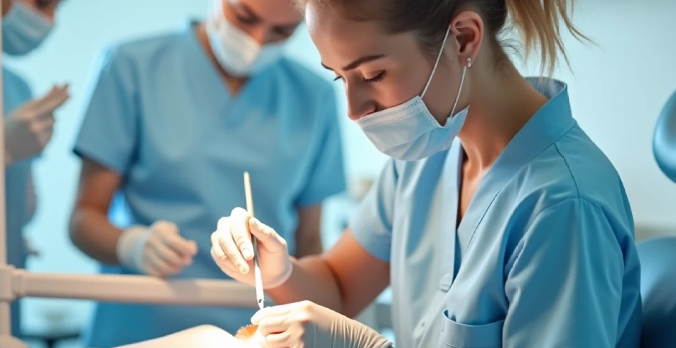 Lors des interventions chirurgicales, le rôle de l’assistante dentaire prend une dimension encore plus critique. Elle prépare le champ opératoire stérile, assiste le praticien en lui passant les instruments nécessaires et assure une aspiration efficace pour maintenir une visibilité optimale.